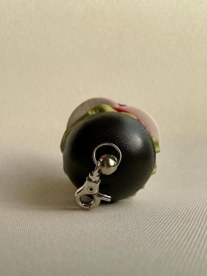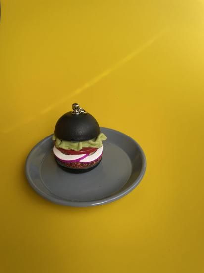 ついにバンズ(パン)に切れめのない革のハンバーガーができあがりました。