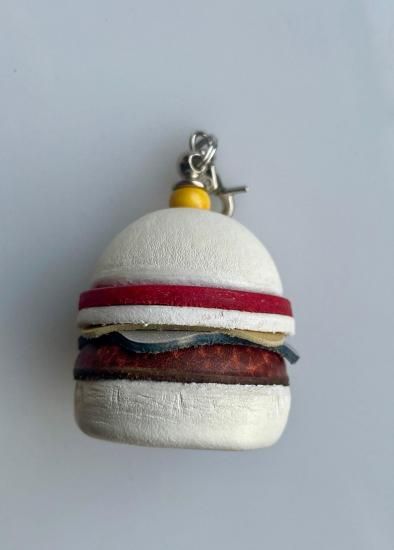 ついにバンズ(パン)に切れめのない革のハンバーガーができあがりました。